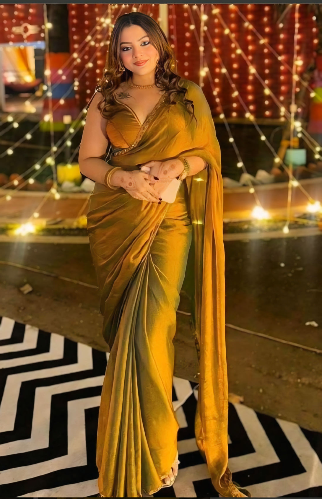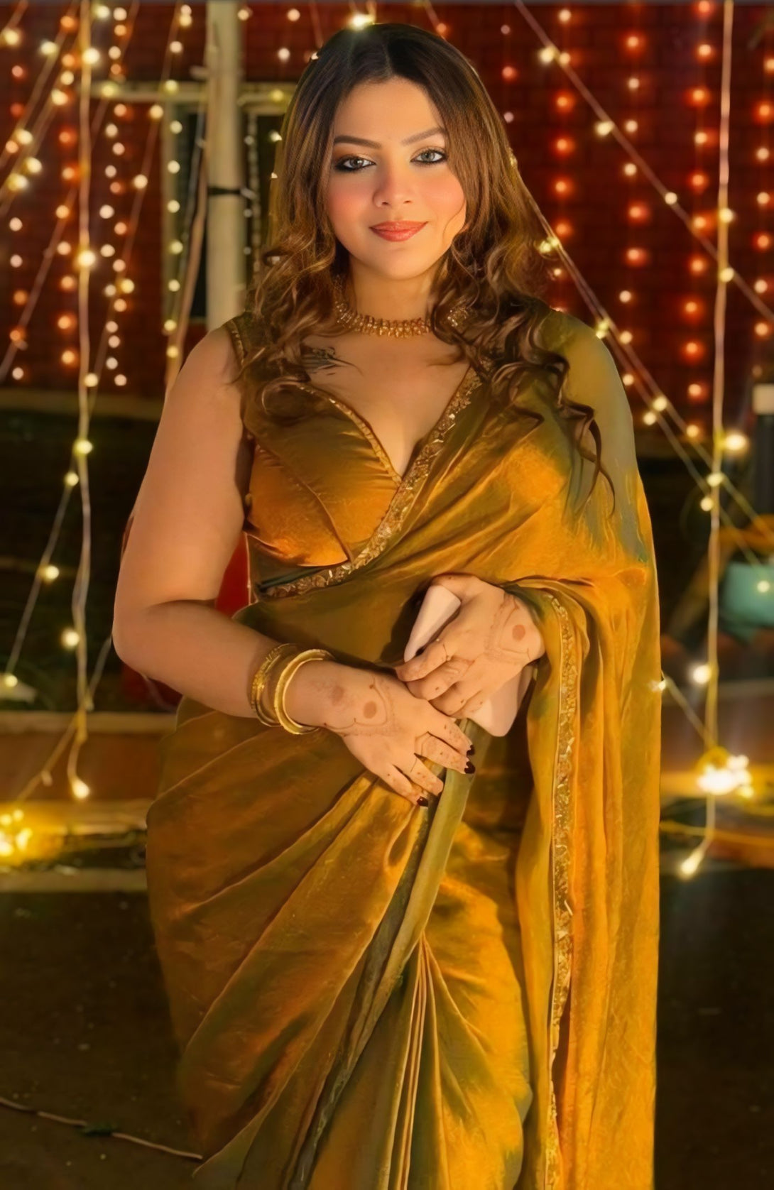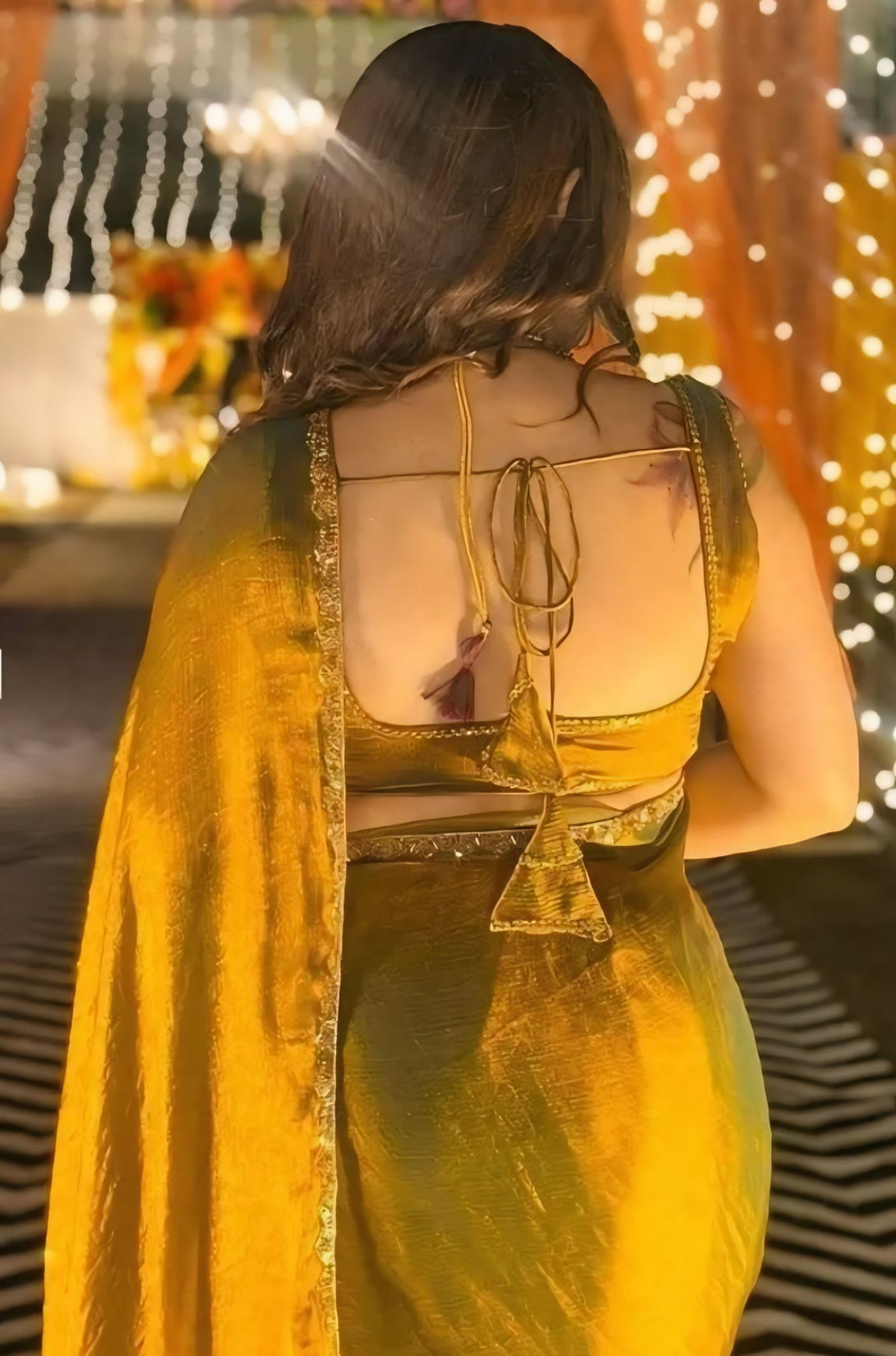 The blouse worn by the model might be for modelling purpose only. Check the image of the blouse piece to understand how the actual blouse piece looks like.